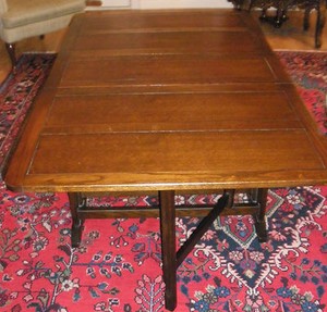 Definition: a type of drop-leaf table, whose sides are attached to legs that are hinged beneath the tabletop; the legs swing out, gate-like, allowing the leaves to be raised; the tabletop itself is usually round or oval, and plain, while the legs are often elaborately turned or spiral and ... Read Article