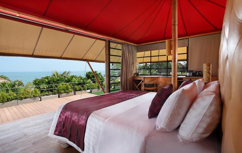 The exotic bathroom includes a contemporary-style bathtub, a daybed for two, teak dining table and chairs, and beanbag comforters. A A favourite retreat for a leisurely meal infused with the flavours ... Fetch Content